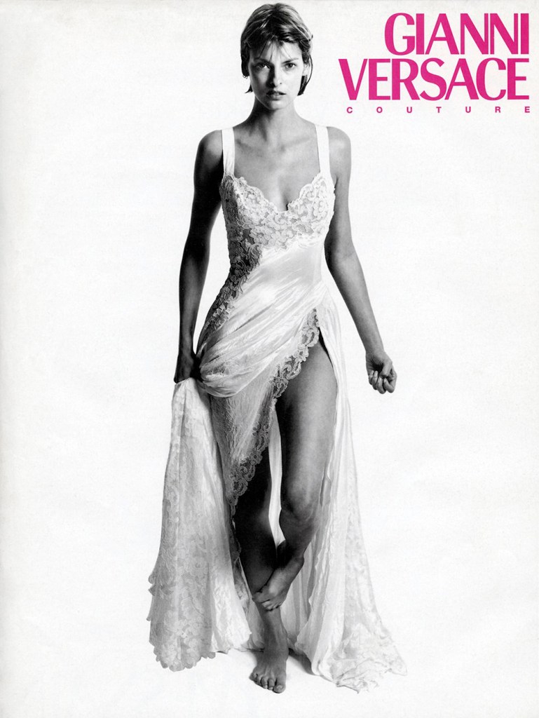 Linda’s fashion profile went into hyperdrive from then on, landing three Vogue covers that same year and nearly everyone emulating the look. The following year, Linda would have 6 Vogue covers for 1989, another 6 for 1990, and an unheard of 9 Vogue covers for 1991! Unbeknownst to Linda at the time, her aesthetic, larger than life rockstar aura and the late fashion designer Gianni Versace’s over the top, glamorous fashion productions would set the stage for the supermodel phenomenon.